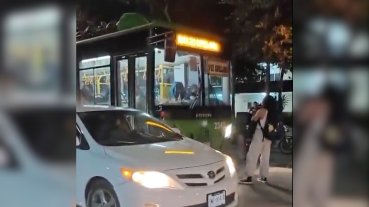 Durante varios minutos, la estudiante se mantuvo firme. El chofer avanzó con la unidad en repetidas ocasiones, intentando intimidarla. Sin embargo, ella no cedió. Finalmente, el operador abrió las puertas y permitió que subiera.